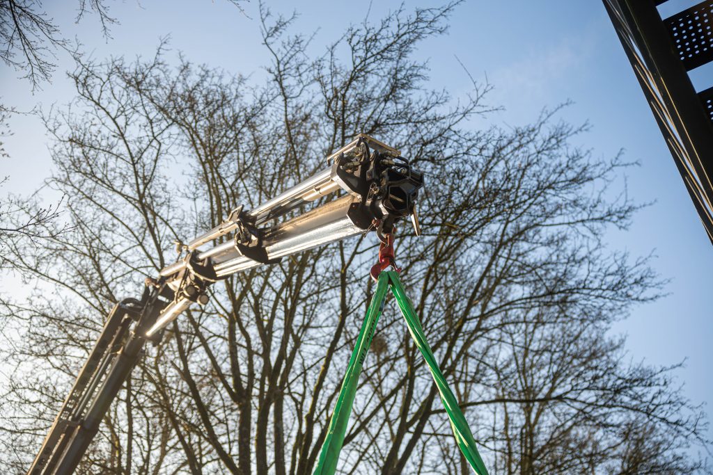 - Met kraan, traploper, takels of heftruck verplaatst moeten worden